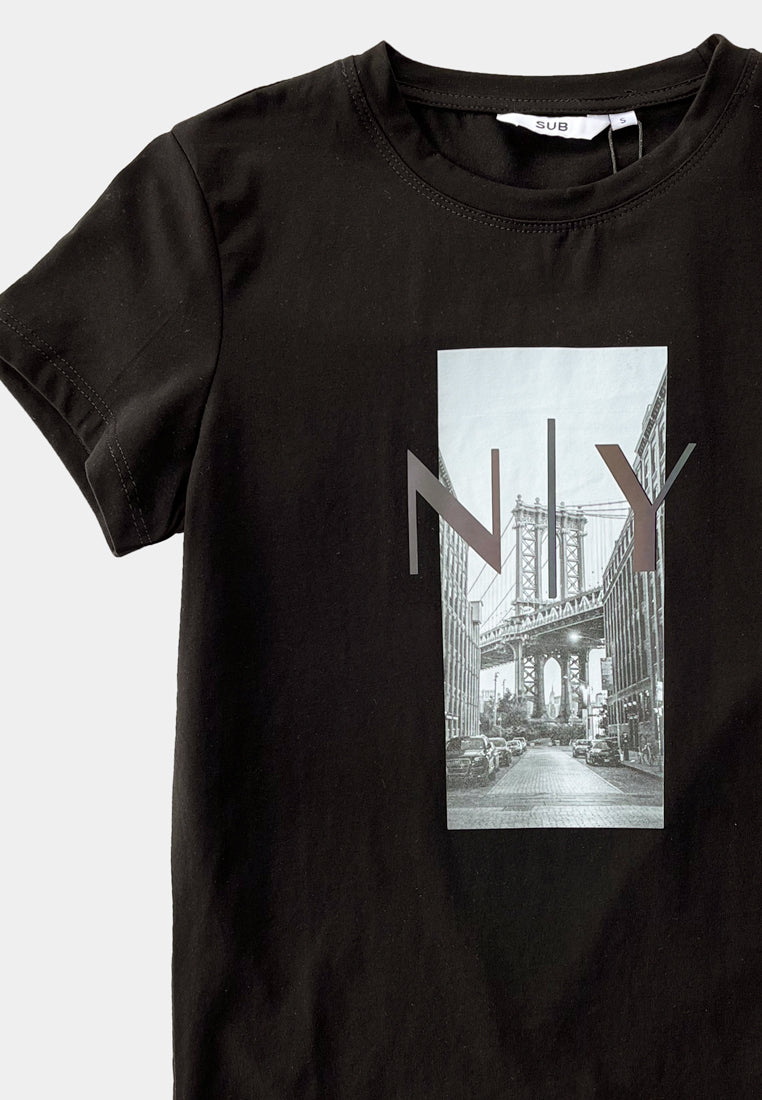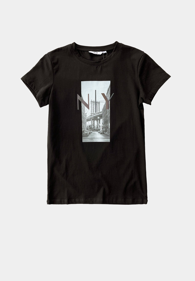 Women Short-Sleeve Graphic Tee - Black - F2W404