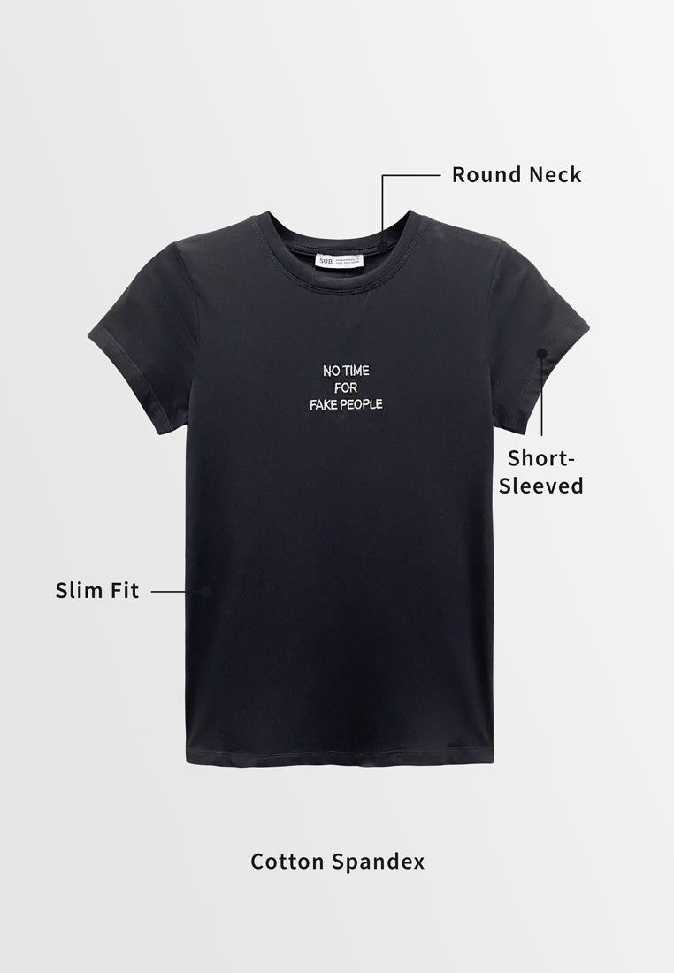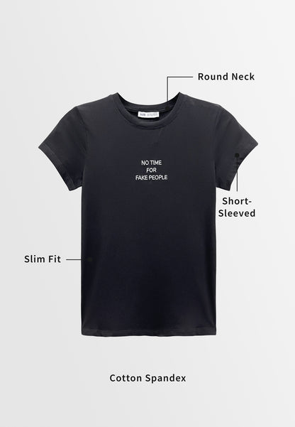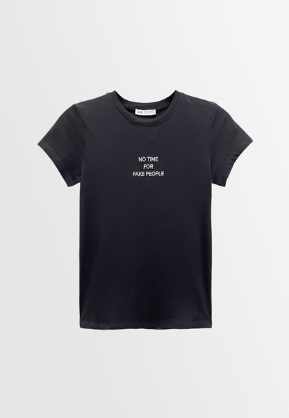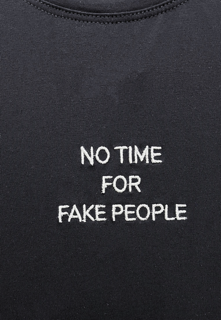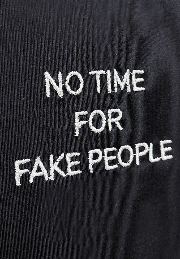- Embroidery Slogan with " NO TIME FOR FAKE PEOPLE "