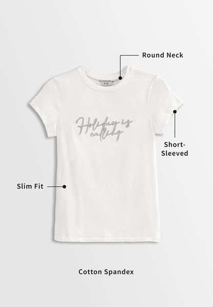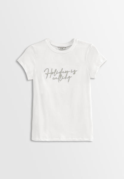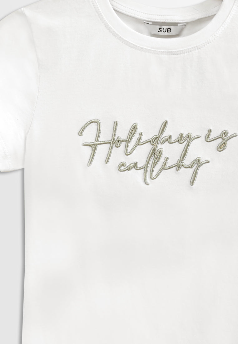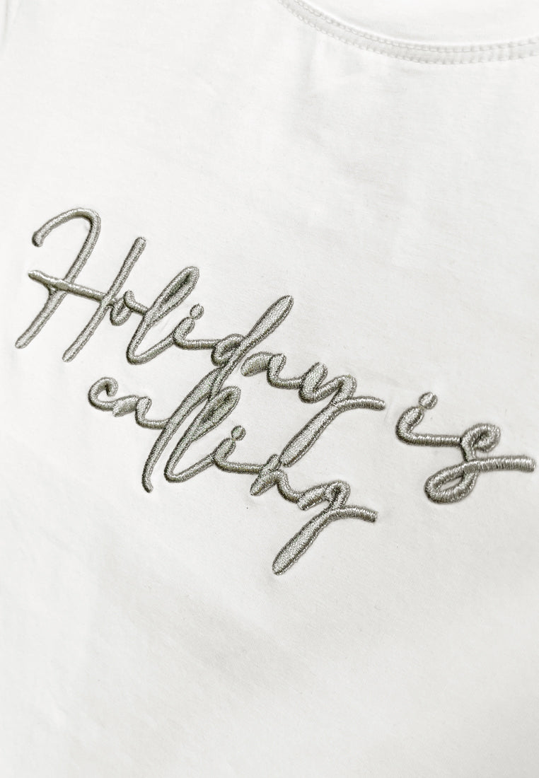 - Embroidery Slogan with " Holiday is calling"