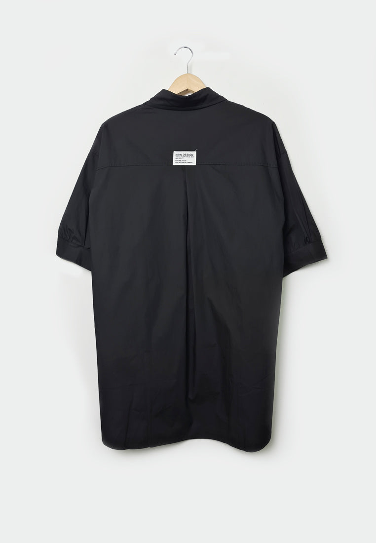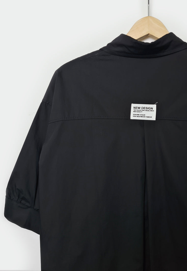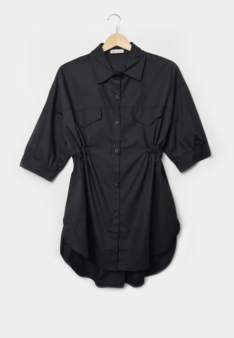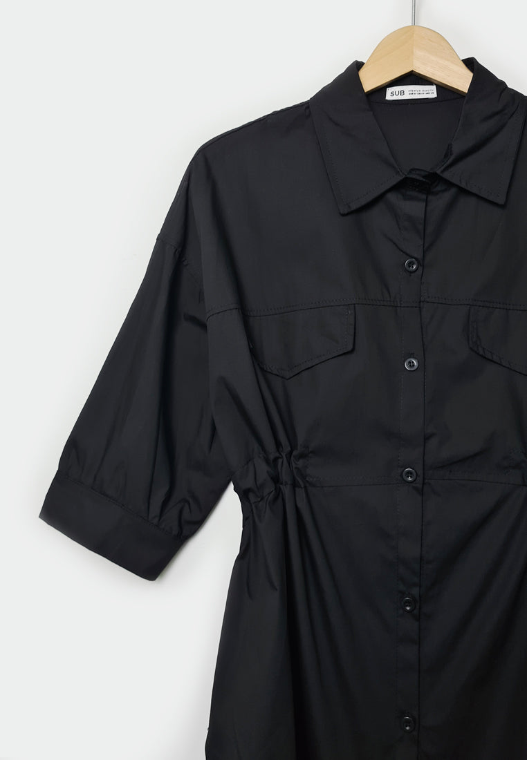 Women Short-Sleeve Shirt Dress - Black - F1W173