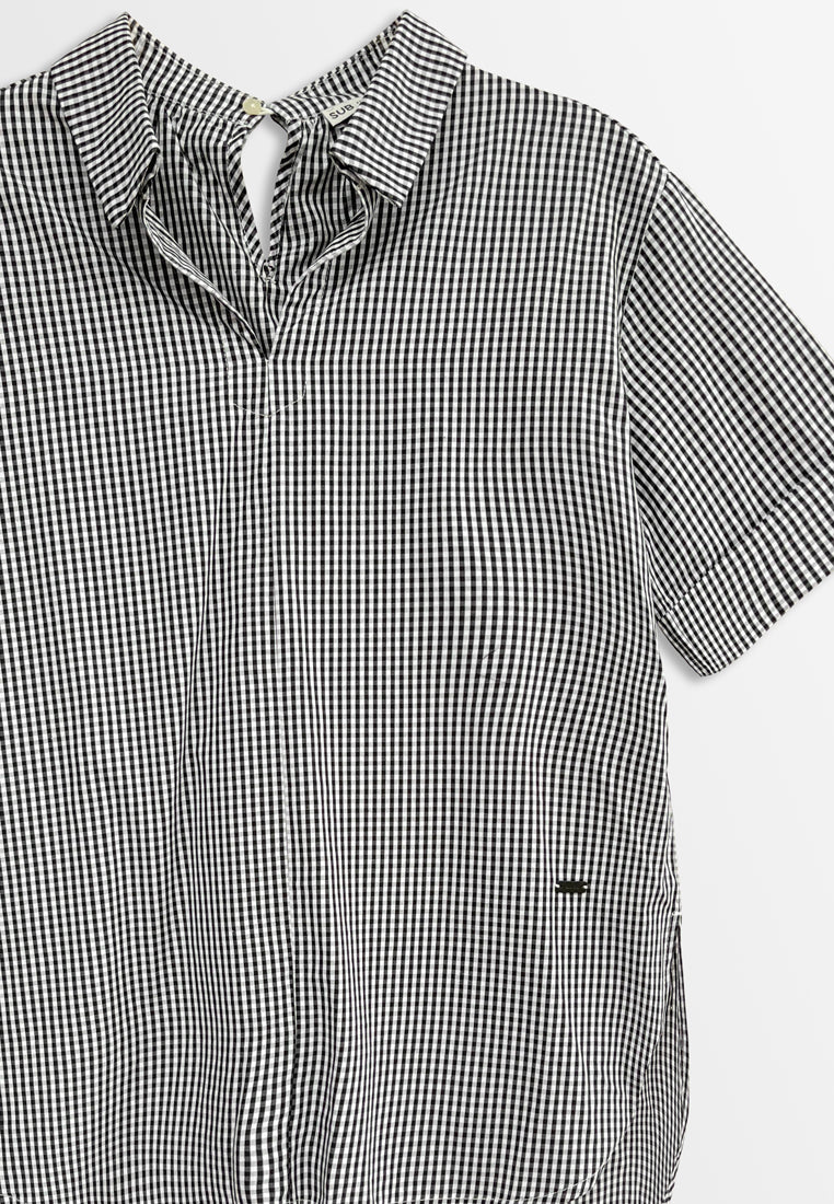 Women Short Sleeve Woven Blouse - Black - H2W430