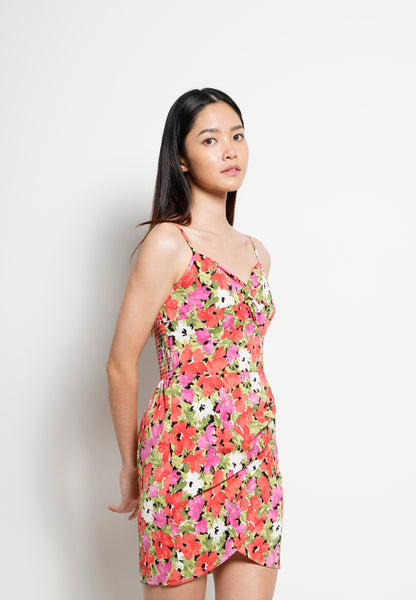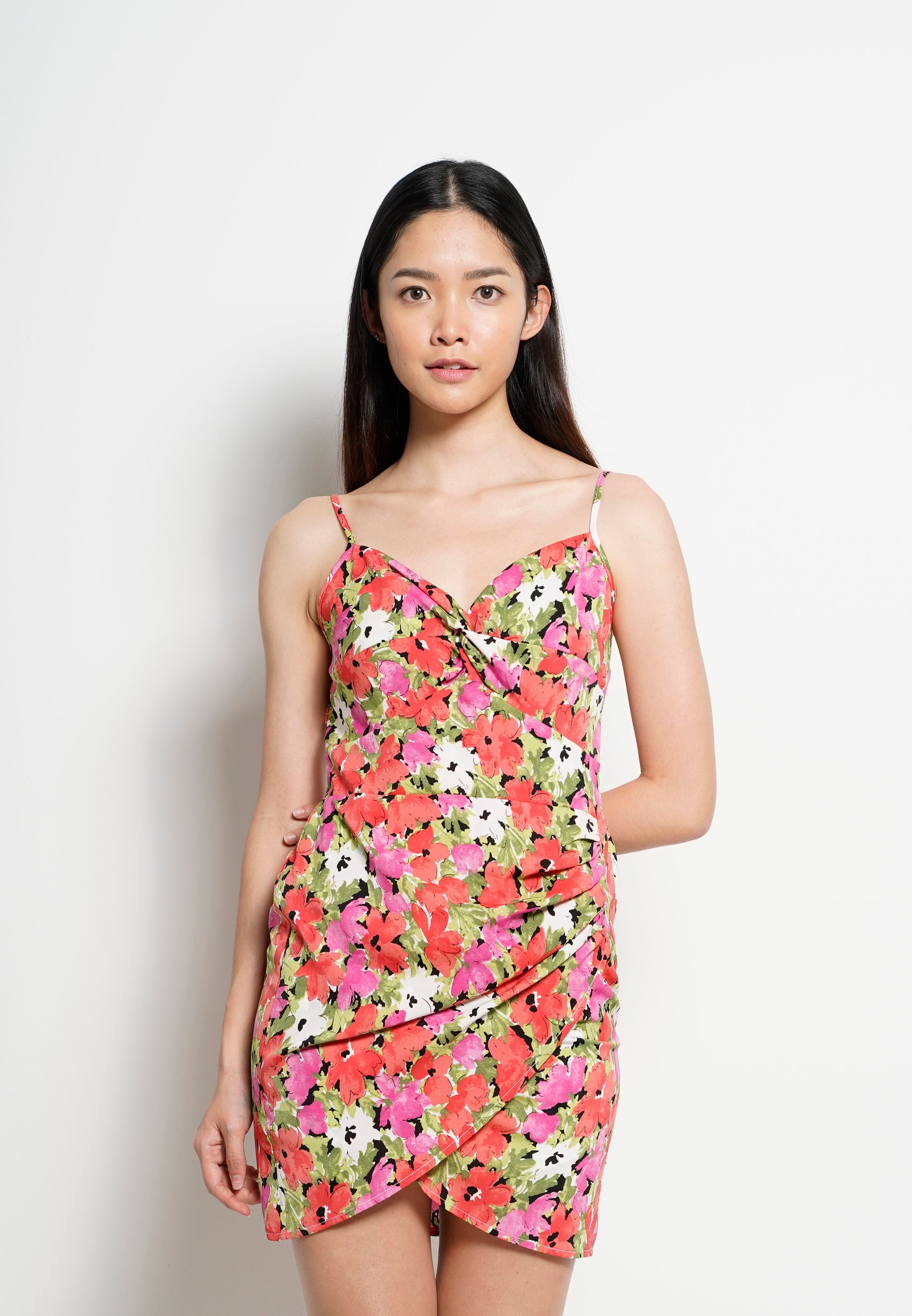 Women Spaghetti Strap Floral Dress - Red - H0W836