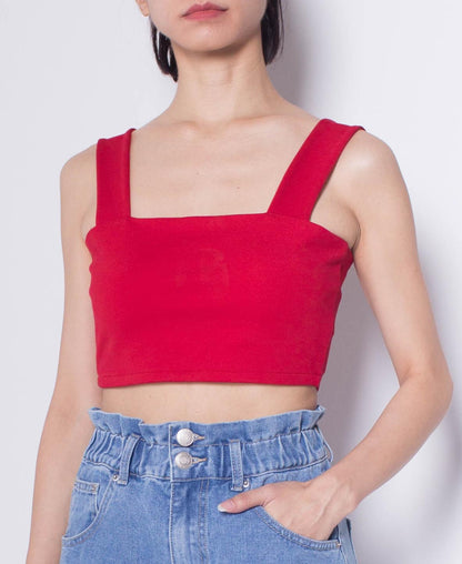 Women Stretchable Cropped Cami Top - Red - H0W828