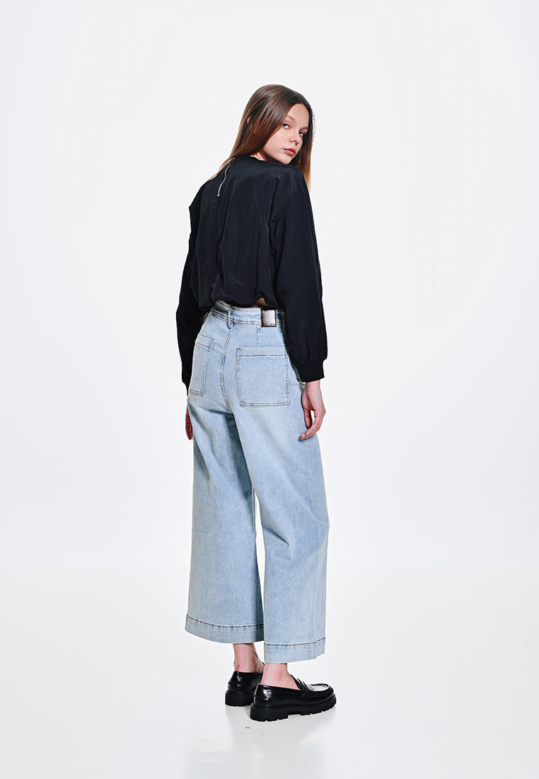 Women Wide Leg Long Jeans - Light Blue - 410049