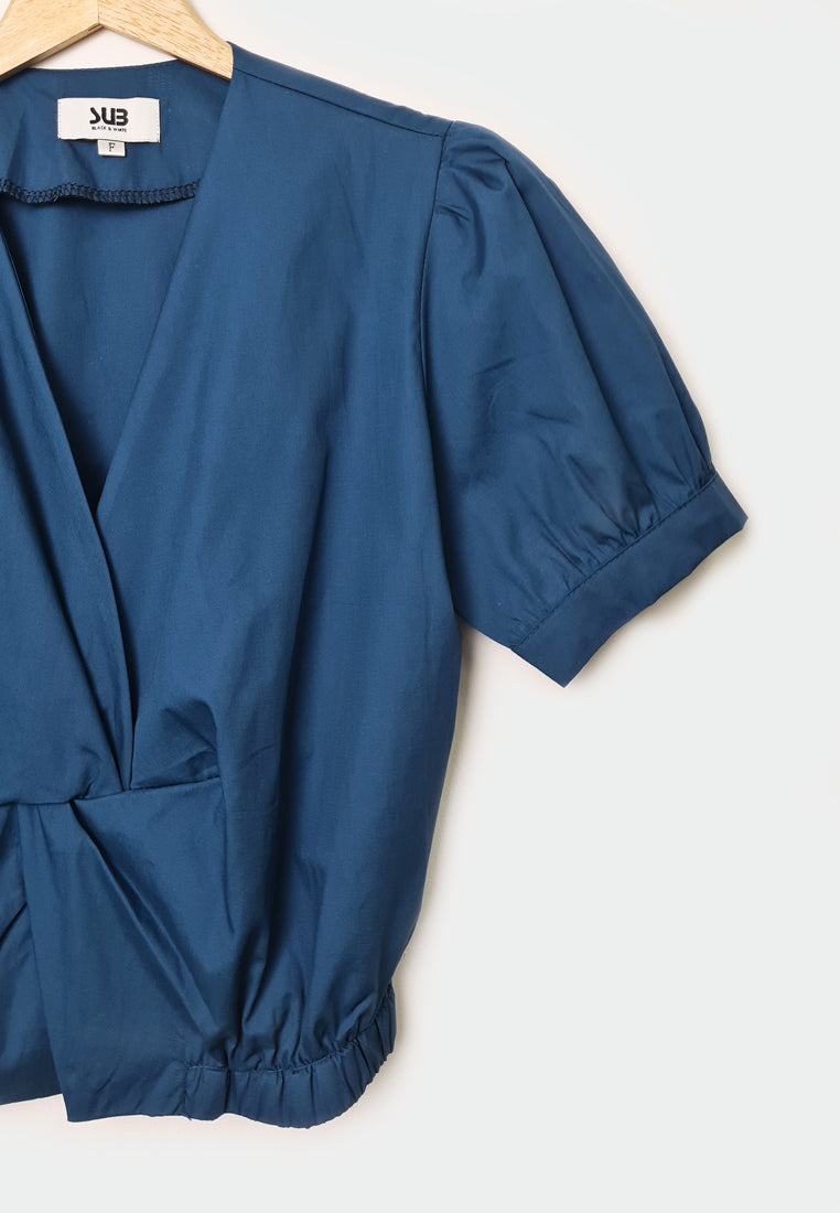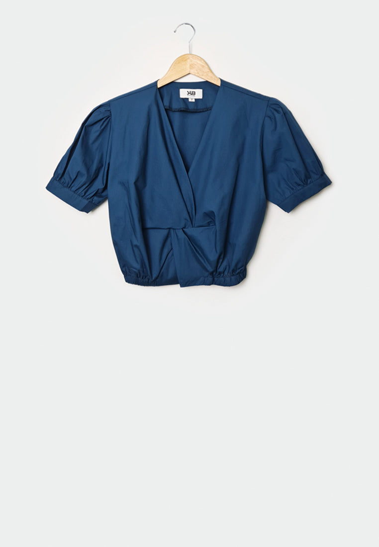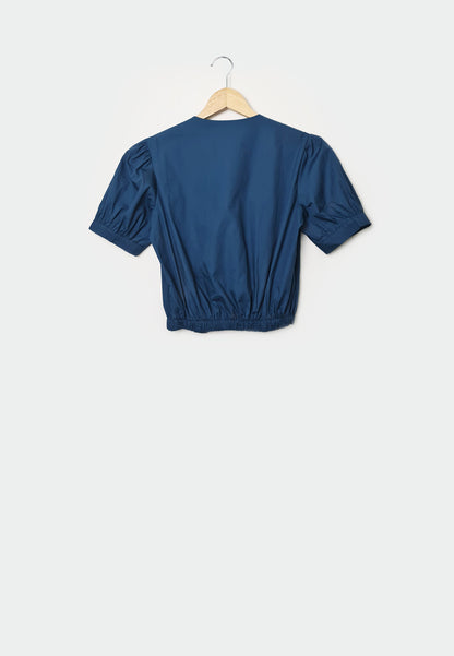 Women Woven Short-Sleeve Blouse - Blue - F1W169